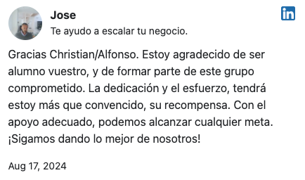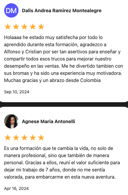 Opiniones y Testimonios de alumnos de Closer de Ventas de Alfonso y Christian