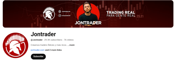 Al desvincularse de Black Sheep, Jon Trader construyó su propia marca. Lo primero que salta a la vista cuando visitamos su canal de YouTube es el lema del banner: «TRADING REAL PARA GENTE REAL. Esa frase resume bastante bien su propuesta: quiere desmarcarse de los gurús que prometen riquezas exprés y presentarse como alguien que trabaja con operaciones de verdad.